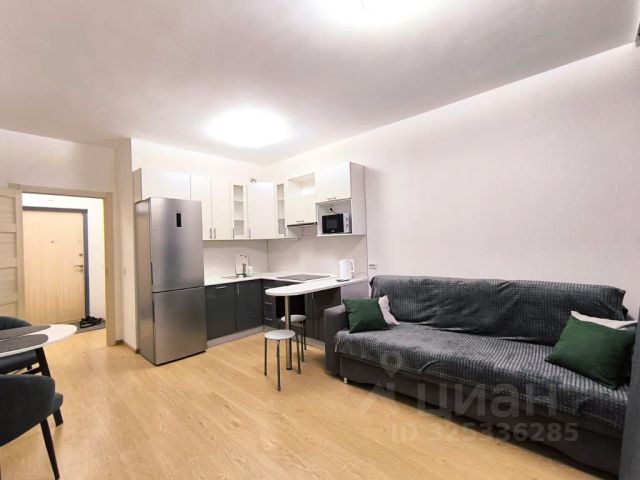 Уютная студия с малахитовыми акцентами в современном комплексе Приморского района.
