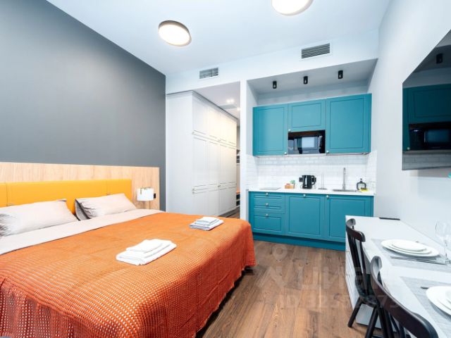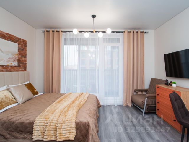 Удобные спальные места. В апартах приятно находиться, много воздуха и света, вдохновляющая атмосфера продуманного стильного дизайна, есть застекленная лоджия.