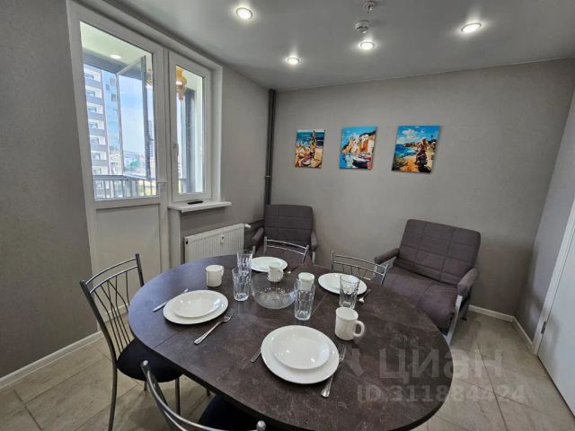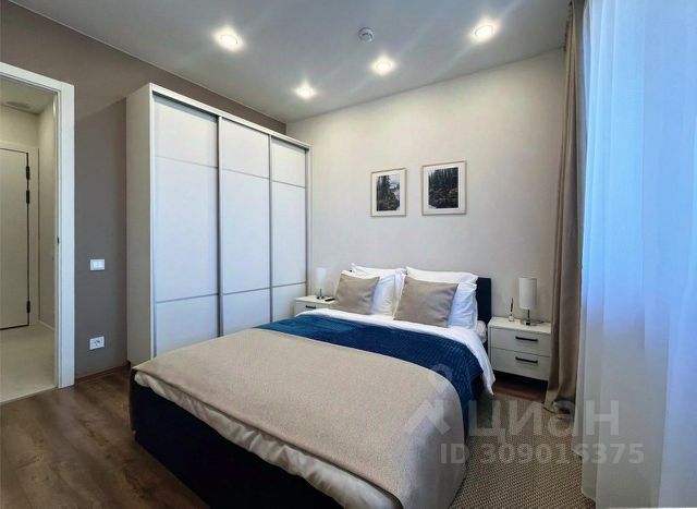 Спальня: двухспальная кровать 160х200 с новым жестким ортопедическим матрасом; шкаф-купе. Вторая комната: двухярусная кровать с ортопедическими матрасами 90х200, шкаф-купе, телевизор, рабочая зона (стол и кресла). Кухня-гостиная: обеденный стол, 2 комода, обеденный стол, дизайнерское зеркало в рост, холодильник, кухонные шкафы со всей необходимой посудой и приборами, микроволновая печь, варочная панель, электрический чайник, тостер, фильтр для воды, вытяжка. Прихожая: шкаф для одежды, обувница. Ванная комната: бесшумная стиральная машинка фен, большая ванна.