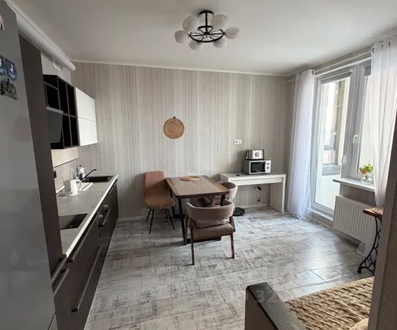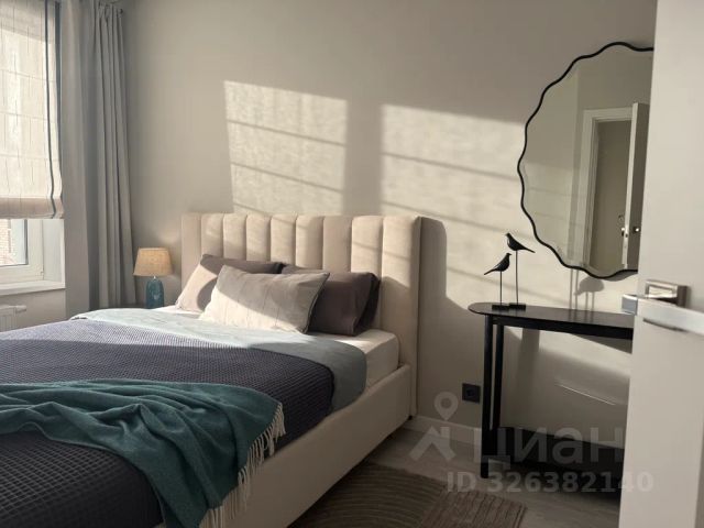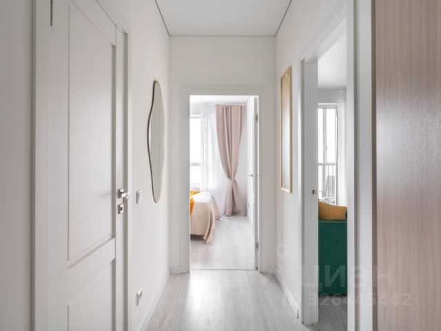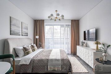 Спальня: двухспальная кровать 160х200 с новым жестким ортопедическим матрасом; шкаф-купе. Вторая комната: двухярусная кровать с ортопедическими матрасами 90х200, шкаф-купе, телевизор, рабочая зона (стол и кресла). Кухня-гостиная: обеденный стол, 2 комода, обеденный стол, дизайнерское зеркало в рост, холодильник, кухонные шкафы со всей необходимой посудой и приборами, микроволновая печь, варочная панель, электрический чайник, тостер, фильтр для воды, вытяжка. Прихожая: шкаф для одежды, обувница. Ванная комната: бесшумная стиральная машинка фен, большая ванна.