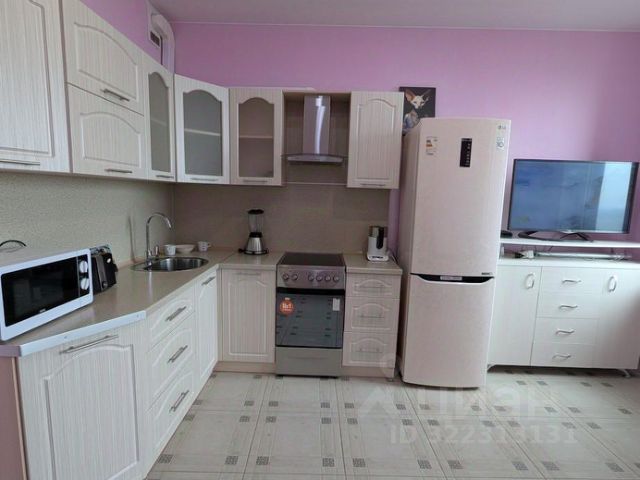 Кухня укомплектована полностью. Большой кухонный гарнитур, вся бытовая техника - 2х камерный холодильник, эл/плита, эл/вытяжка, СВЧ, большой ЖК телевизор, стиральная машина/автомат.
