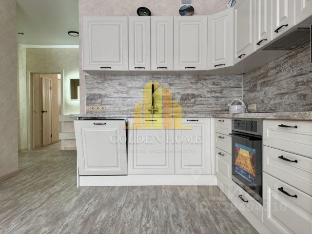 Из техники: Посудомоечная машина, стиральная машина, электрическая плита с вытяжкой, духовой шкаф, микроволновка, холодильник, телевизор, электрочайник, утюг.