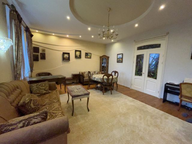 Достойная квартира в сталинском доме с хорошим видом и дизайнерским ремонтом, делали для себя из качественных материалов. Общая площадь квартиры 105 кв.м. Кухня-столовая -26 кв.м., Гостиная - 38 кв.м., Спальня - 17,5 кв.м. с балконом и вместительной гардеробной. Есть необходимая мебель, вся техника фирмы "Miele". В парадной есть охрана, установлен новый лифт. Высота потолков -3,3м.