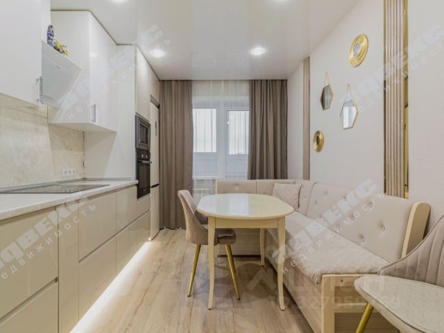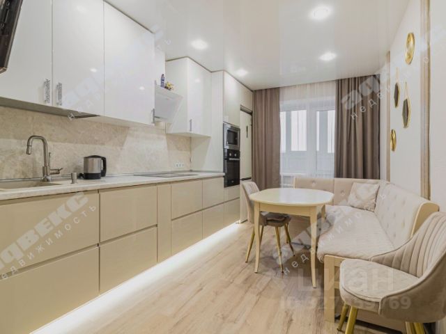 Кухня - вся кухонная мебель в наличии как на фото, холодильник, микроволновая печь, led-телевизор, электрочайник, вся необходимая посуда (тарелки, чашки, кастрюли, сковороды, столовые приборы), плита стеклокерамика, фильтр для питьевой воды с отдельным краном на раковине. Хим.средства для стирки, мытья посуды, уборки, и т.д. все есть