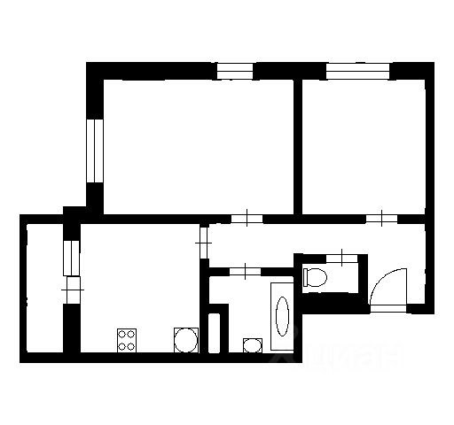 Общая площадь 50м2: комнаты изолированные 16м2 + 14м2, кухня 8м2. Все окна выходят во двор.