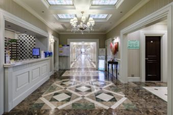 находится на спокойном и утопающем в зелени бульваре, а также в шаге от Английской набережной и Александровского сада с фонтаном.