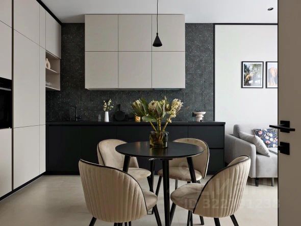 Планировка квартиры включает в себя: кухню-гостиную, спальню, сауну, гардеробную комнату.