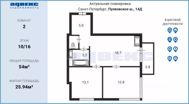 До Аэропорта ПУЛКОВО на личном транспорте или такси 13 минут.