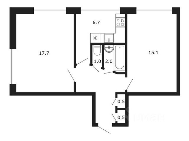 От года, 40 000 ₽ + 6 500 ₽ комм. платежи (без счётчиков), без комиссии, залог 40 000 ₽