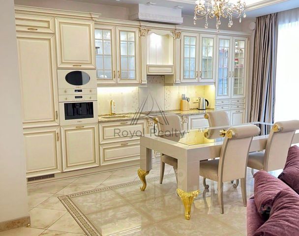 Бытовая техника: Полностью оборудована необходимой бытовой техникой высокого класса, включая посудомоечную машину, кондиционер, стиральную машину, холодильник, микроволновую печь, варочную поверхность, духовой шкаф, вытяжку, телевизор