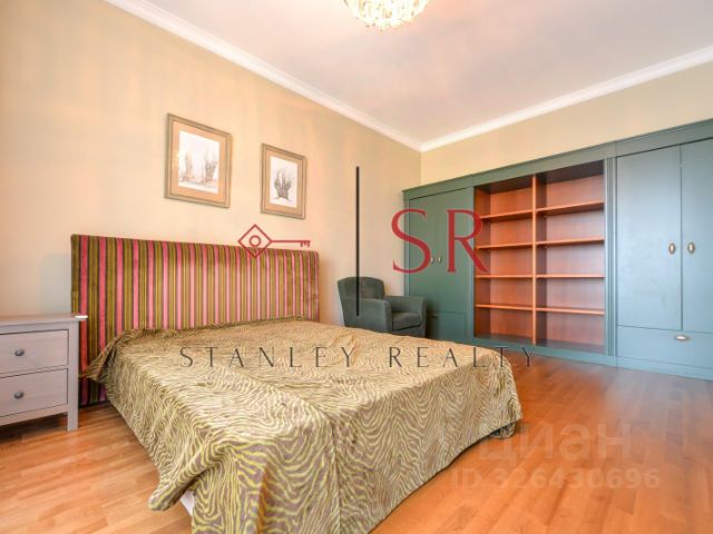 В спальни: стенной шкаф, комод, тумбочки и двуспальная кровать, диван.