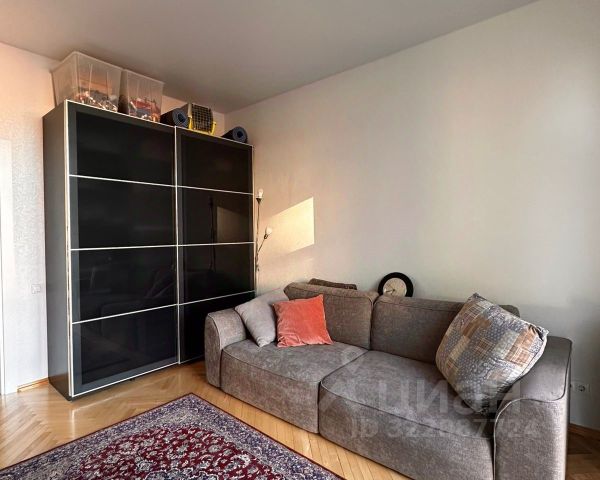 В квартире есть кладовка/гардеробная. На фото представлены варианты перестановки мебели в гостиной.