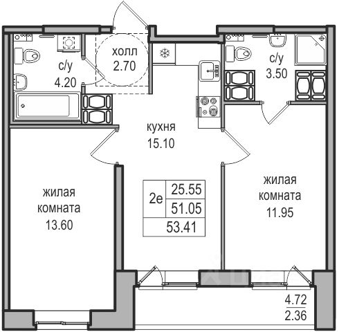 От года, 53 000 ₽ + 5 000 ₽ комм. платежи (без счётчиков), без комиссии, залог 65 000 ₽