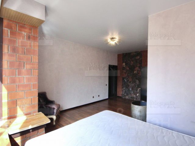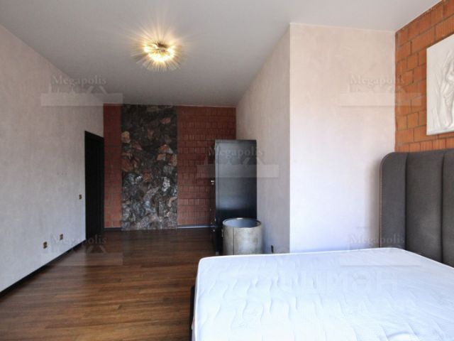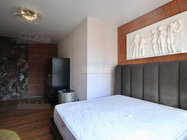 Планировка квартиры включает в себя: кухню-гостиную, спальню, сауну, гардеробную комнату.