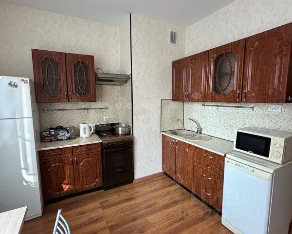 Кухня - вся кухонная мебель в наличии как на фото, холодильник, микроволновая печь, led-телевизор, электрочайник, вся необходимая посуда (тарелки, чашки, кастрюли, сковороды, столовые приборы), плита стеклокерамика, фильтр для питьевой воды с отдельным краном на раковине. Хим.средства для стирки, мытья посуды, уборки, и т.д. все есть