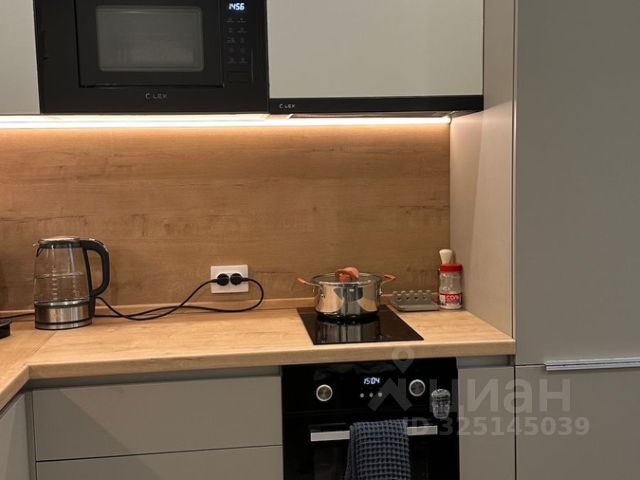 Кухня оборудована всем необходимым кухонным инвентарем (тарелки, кружки, стаканы, бокалы, кастрюли, сковорода, терка, разделочные доски, столовые прибора) все для приготовления полноценного питания для нескольких человек.