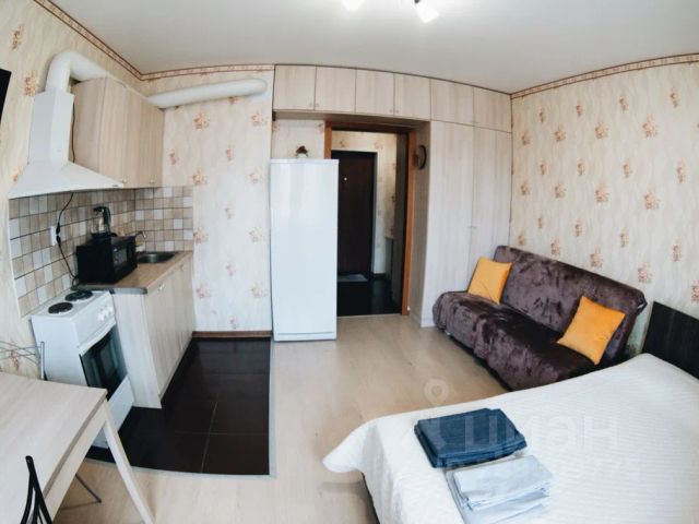 В зоне Кухни-Гостиной: кухонный гарнитур, варочная панель, духовой шкаф, электрическая вытяжка, вместительный холодильник, микроволновка, электрический чайник, необходимая посуда, необходимые кухонные принадлежности и бытовая химия, полотенце, чай/кофе, сахар/соль.