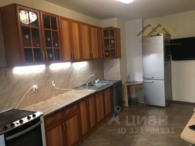 На кухне новая мебель с доводчиками, раздвижной стеклянный стол, большой новый холодильник No Frost, СВЧ, газовая панель на 2 конфорки с электроподжигом, электр. духовой шкаф, вытяжка, ЖК телевизор, шторы "блэкаут".