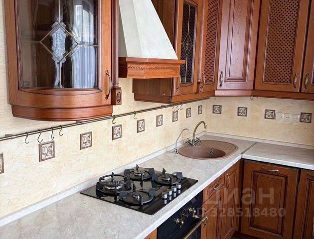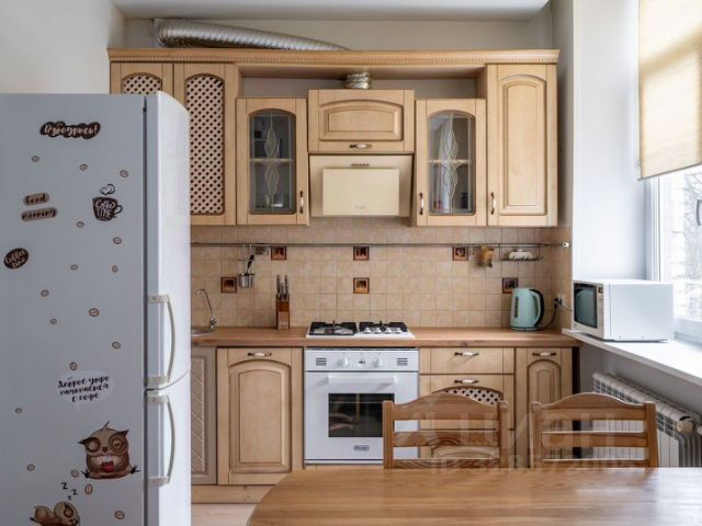 Уютная и просторная кухня в классическом стиле - 14,5 кв.м. оснащена всей необходимой бытовой техникой, включая варочную панель, духовой шкаф, посудомоечную машину, вытяжку, холодильник Side-by-Side.