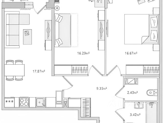 Есть вся нeoбxодимaя бытовая техникa: xолoдильник, варочная поверхность, духовка, вытяжка, чайник и капсульная кофеварка, посудомоечная машина, микроволновая печь, cтиpальная и сушильная машины, бойлер.