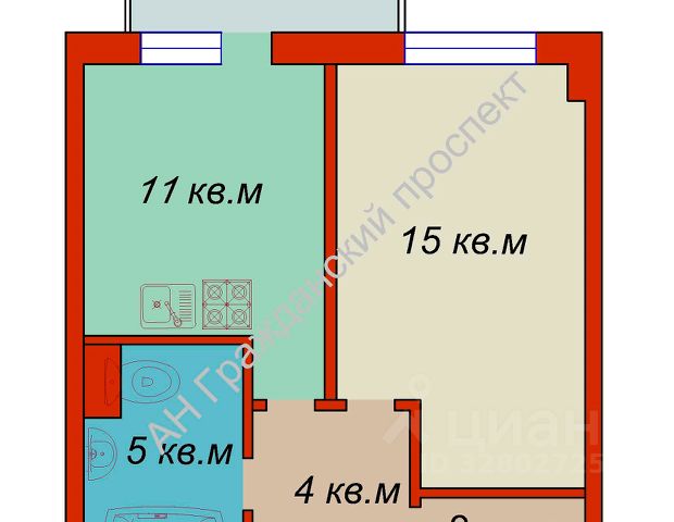 18.4 m² Studio near Chernaya Rechka Metro. Rent from 1 month, NO COMMISSION. Last rooms availvabe!