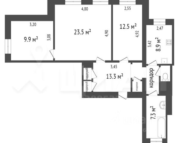 Квартира с косметическим ремонтом (стены выравнены, покрашены, имеется кафель в ванной и туалете, на полу в квартире ламинат), имеются все инженерные коммуникации, счётчики, имеется Wi-fi.