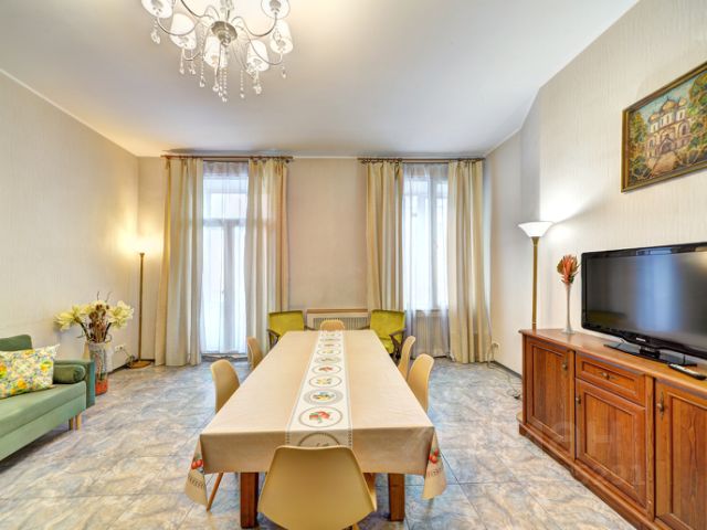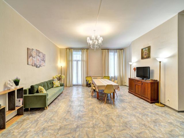 Светлая и уютная трехкомнатная квартира находится на углу главной ресторанной улицы Рубинштейна и Невского проспекта, рядом с Аничковым мостом и видом на библиотеку им. Маяковского в историческом здании доходного дома подворья Троице-Сергиевой Лавры. Выходя на улицу через арку с одной стороны, вы оказываетесь в центре событий на бурлящей улице баров и ресторанов и на главном проспекте Санкт-Петербурга Невском, а с другой стороны, пройдя через двор, попадаете на набережную реки Фонтанки и перед вами Аничков мост, Аничков дворец и дворец Белосельских-Белозерских, Шереметьевский дворец. Ваш сон не нарушит шум ресторанной улицы, окна нашей квартиры выходят в тихий двор и перед вами открывается вид на здание библиотеки им Маяковского и шикарное Питерское небо, также из окон можно увидеть крыши зданий Невского проспекта. Мы заботимся о наших гостях и создаем условия, чтобы было ощущение, что вы дома. В квартире есть две изолированные спальни, просторная кухня-гостиная и 2 раздельных санузла. В каждой спальне установлена двуспальная кровать 180х200 и 160х200. В кухне-гостиной раскладной диван, оборудованная кухня с газовой плитой, холодильником, микроволной печью и всей необходимой посудой для приготовления блюд. Также есть стиральная машина, гладильная доска, утюг и фен. На случай жаркой погоды есть вентилятор и мобильный кондиционер. Квартира сдаётся на срок от 2 суток. При бронировании вносится страховой депозит на сумму 10000 руб. , заключается договор (при себе иметь паспорт). В случае сохранности имущества квартиры страховой депозит возвращается в день отъезда на карту. В случае порчи имущества удерживается сумма из страхового депозита, размер зависит от повреждений или ущерба. Максимальное количество гостей 4 Дополнительное спальное место по запросу, доплата 1500 руб. Заезд с 15:00 Выезд до 11:00 Курение в апартаментах запрещено. Размещение с животными запрещено. Не сдается для проведения вечеринок Сдается 3-комнатная квартира посуточно на улице Рубинштейна в Санкт-Петербурге.