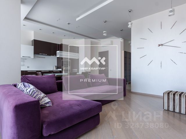 В квартире выполнен дизайнерский ремонт, что придаёт ей уникальный стиль и уют. Комнаты полностью меблированы, вся мебель встроена, есть вся необходимая техника: кондиционер, холодильник, посудомоечная машина, телевизор, стиральная машина. Два санузла :один при спальне, второй гостевой. В гостинной зоне для уюта встроен паровой камин.