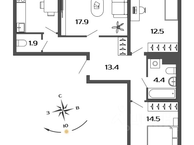 От года, 70 000 ₽ + 10 000 ₽ комм. платежи (без счётчиков), без комиссии, залог 80 000 ₽
