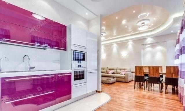 Кухня (14 м кв) выходит окнами во внутренний двор. Оснащена всем необходимым: вытяжка, варочная панель, духовка, микроволновка, Эл. Чайник, посудомоечная машина, стиральная машина, мойка, холодильник. Есть набор посуды.