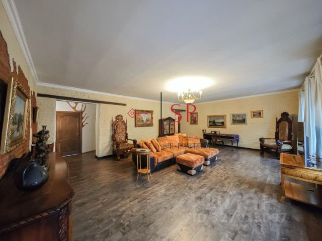 Гостиная-кухня — сердце дома: лёгкая, воздушная, с панорамными окнами и четырьмя балконами, словно ступенями к небу. Здесь вас встречает гигантское абстрактное полотно в раме со светодиодной подсветкой — как живой закат, застывший в янтаре. Деревянный паркет теплого оттенка, мягкий бежевый диван, розовые бархатные кресла и хрустальный люстр-скульптура — всё продумано до деталей. А кухня в стиле "сдержанная роскошь" с встроенными техникой и мраморной столешницей — место, где готовить — удовольствие, а завтракать — ритуал.