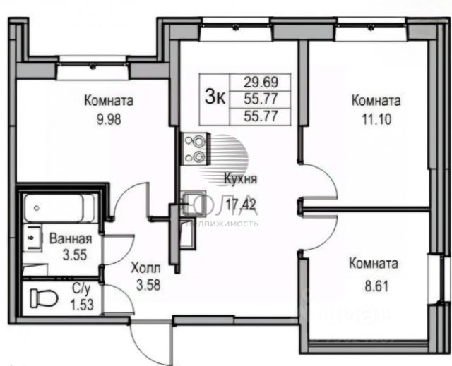 От года, 25 000 ₽ + 10 000 ₽ комм. платежи (без счётчиков), комиссия 100%, залог 45 000 ₽