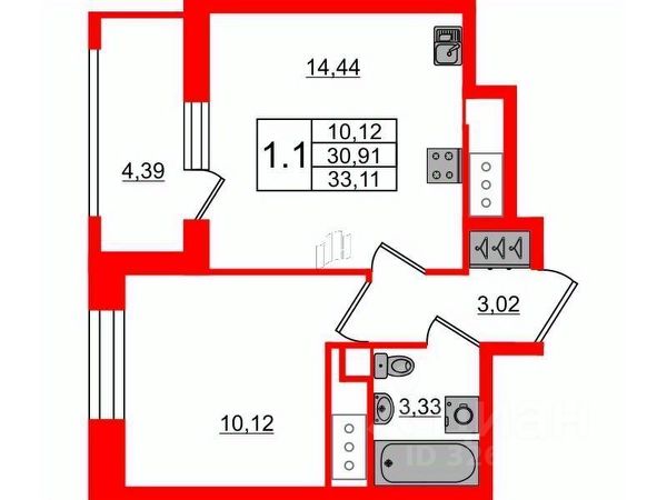 От года, комм. платежи не включены, комиссия 75%, залог 52 000 ₽