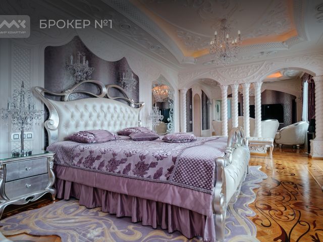 - просторная мастер спальня 52 кв.м. с зоной отдыха и лаундж-зоной на застеклённой видовой лоджии (Телевизоры Bang&Olufsen,паркет из 20 ценных пород дерева, эксклюзивный ковёр ручной работы. Отдельный санузел: душевая кабина с "тропическим дождём", джакузи, турецкая сауна, телевизор Bang&Olufsen)