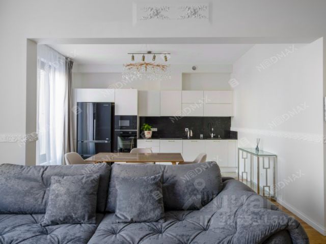 -Кухня 10 кв.м. полностью оснащена элитной бытовой техникой Miele: холодильник, духовой шкаф, пароварка, кофе машина, индукционная плита, посудомоечная машина, подогреватель посуды, телевизор Bang&Olufsen.