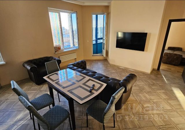 В квартире есть все необходимое для комфортного проживания - двухспальная кровать, встроенный шкаф-купе, ЖК ТВ, встроенная кухня с обеденной зоной, посудомойка, холодильник, грамотная планировка, в каждой комнате кондиционер, огромная панорамная лоджия на две стороны - всё делали для себя. Фото не совсем удачные, снимали в вечернее время, есть ещё дополнительные фотографии по вашему запросу.