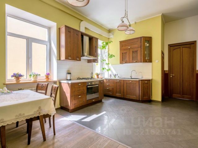 В квартире два санузла (один с ванной, другой с душевой кабиной). Вместительная кухня (16 кв.м) с большим обеденным столом, за которым комфортно разместится от 6 до 10 чел.