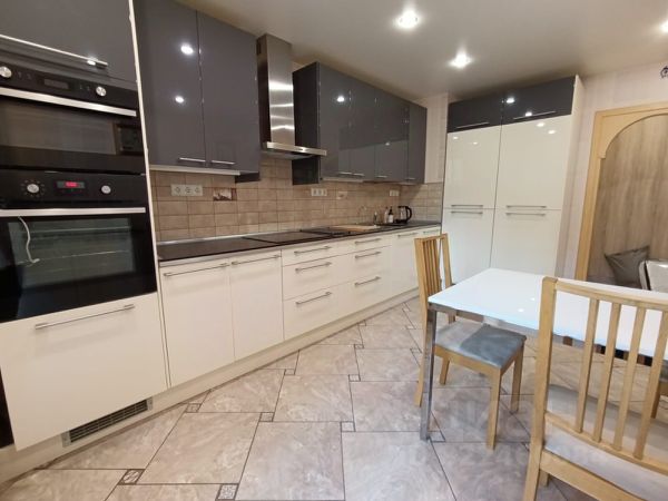 1-ая комната кухня (индукционная варочная панель, холодильник nо-frоst, микроволновка, духовка, чайник, посудомоечная машина, фильтр воды, раскладывающийся обеденный стол);