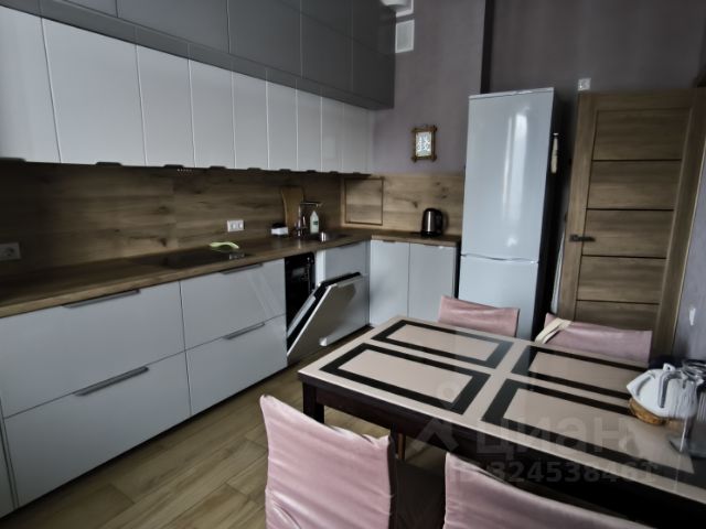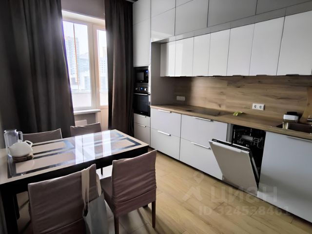 Кухня оснащена бытовой техникой: посудомоечная машина,холодильник, варочная панель, духовка, микроволновка, чайник. Есть необходимый набор посуды, столовые приборы, кастрюля, сковорода.