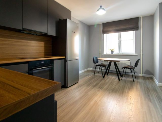 Квартира новая, уютная, современная, недавно после ремонта, состоит из большой кухни-гостиной (27 кв.м) и двух спален.