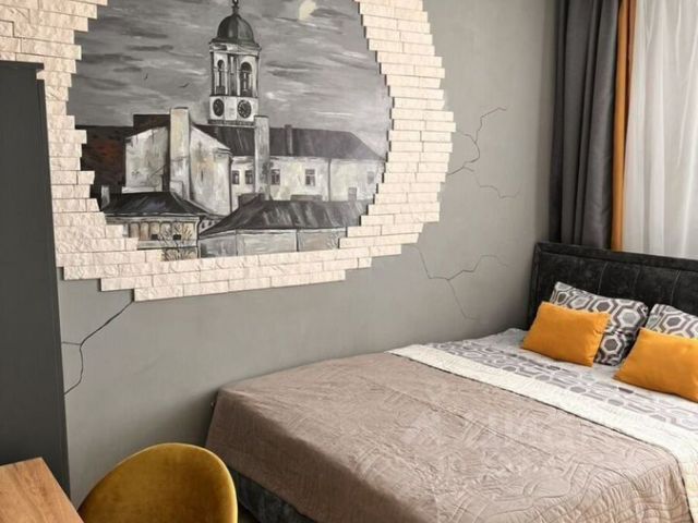 У Вас будет в распоряжении спальня с прекрасным панорамным видом на город и бухту. В спальне есть двуспальная кровать, стол для работы возле окна, а так же интересные предметы интерьера.