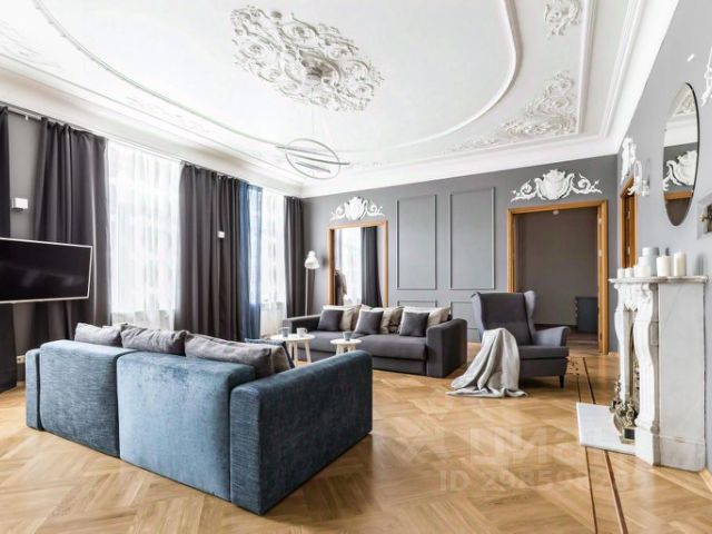 Presidential suite апартаменты на Большой Конюшенной улице Наша оценка на Booking 9,5 Минимальное количество дней аренды 2 суток. В праздничные дни может увеличиваться до 3-4 суток. 6 гостей 3 спальни 3 больших кровати Дом особняк семьи Челищева - Доходный дом П. А. Мясоедова 1896 г. постройки расположен на Большой Конюшенной улице. Просторные апартаменты находятся на 4 этаже, большие арочные окна выходят на улицу. Потолки высотой 4,5 м. Апартаменты 130 кв. м. имеют два уровня: на первом большая гостиная 40 кв. м и большая сальня 30 кв.м. с кроватьюKing size, раздельный санузел и кухня со столовой зоной. На втором уровне две спальни c кроватями Queen size , камин, душевая кабина. У нас есть все необходимое для вашего комфорта: кондиционер свежее постельное белье мягкие полотенца тапочки и предметы гигиены, фен гладильная доска стиральная и посудомоечная машины газовая колонка ( всегда есть горячая вода) на кухне вся необходимая посуда капсульная кофемашина с капсулами, чайник ( чайные пакетики и сахар), тостер, блендер. Предоставляем бесплатно по запросу детскую кровать-манеж и стульчик для кормления. Правила дома: - прибытие после 15:00, выезд до 12:00 ( ранний заезд возможен по договоренности, при выезде можно оставить вещи - заранее оговаривается) - плата за уборку включена в стоимость аренды - курение запрещено в аппартаментах и на территории дома - к сожалению мы не принимаем гостей с питомцами - соблюдение тишины с 23:00 до 10:00 - проведение вечеринок запрещено - при заселении подписывается договор аренды и вносится залог сохранности имущества в размере 20000рублей ( возвращается после уборки) Будем рады видеть вас у нас в гостях! Снять 4-комнатную квартиру посуточно на улице Большая Конюшенная в Санкт-Петербурге.