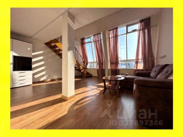 Квартира состоит из большой гостиной с уютным диваном, в комнате два панорамных окна с балконом, спальня с большой гардеробной и балконом, кухня-столовая, санузел, постирочная зона и отдельно гардеробная при входе, высота потолков 3,3 метра.
