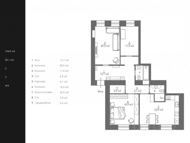 • Санузел: совмещенный