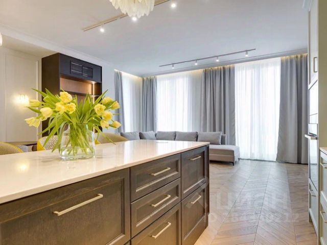 Предлагается современная квартира с видом на набережную и собственной террасой в элитном ЖК "Omega House". Ремонт выполненный по индивидуальному дизайн-проекту для собственного использования и поэтому планировка продуманна до мелочей: 1) спальный блок, где находится: - мастер-спальня с собственной ванной комнатой оборудованной гидромассажной ванной и душевой, вместительная гардеробная и выход на балкон, - две детские спальни, у одной выход на балкон, - ванная комната, где установлена стиральная и сушильная машина, душевая с функцией парового душа, - большой шкаф-купе. 2) блок общей зоны: - громадная гостиная с выходом на открытую террасу с видом на набережную Карповки и Неву, - кухня с отдельным баром и выходом на балкон, - собственный кинотеатр с проектором, - техническая комната где установлены два дополнительных холодильника, - прихожая с гостевым санузлом. По технической части: установлена система умный дом с управлением шторами, светом и встроенной акустикой, системой приточно-вытяжной вентиляции и кондиционирования в каждой комнате. Установлены фильтры очистки воды. Квартира полностью готова для вашего проживания, за счет панорамного остекления и большого количества окон - в квартире много естественного света, а в подземном паркинге есть два места в собственности за отдельную плату. Инфраструктура жилого комплекса соответствующая самым высоким стандартам: в вашем распоряжении различные помещения для хранения велосипедов и колясок, вход осуществляется через красивое лобби с консьержем. Безопасность обеспечивает профессиональная служба круглосуточной охраны по всему периметру комплекса с полным контролем доступа. Комплекс имеет автономную газовую котельную с трехступенчатой системой фильтрации воды, что обеспечит вам чистую воду без отключений круглый год, а надежная управляющая компания прекрасно следит за чистотой и порядком внутри и снаружи комплекса. Однородное окружение в комплексе и все прелести расположения: тишина, свежий воздух окружающих парков и живописные виды на гладь реки Малой Невки и реки Карповки, а также близкое расположение Крестовского острова. Позвоните нам, мы с радостью ответим на ваши вопросы и организуем просмотр в удобное для вас время. Сдается 4-комнатная квартира в округе Чкаловское в Санкт-Петербурге.