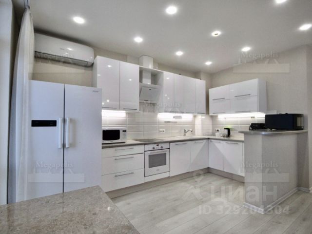 - кухня со всем необходимым (холодильник, варочная индукционная панель, духовой шкаф, микроволновка, посудомоечная машина, чайник, капсульная кофемашина, а также вся необходимая посуда, столовые приборы, бокалы)
