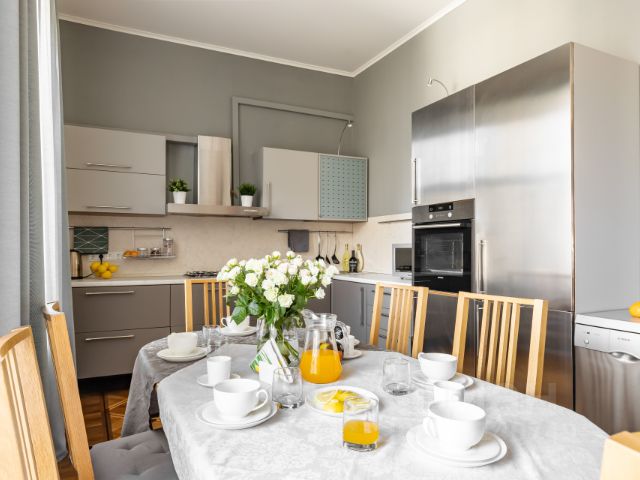 Апартаменты Panorama от CITI Apartments • 12 гостей • 180 м2 • 4 спальни • 3,5 санузла • пожалуй, лучший вид на Исаакиевский собор! • Парадные апартаменты с высокими потолками. В интерьере сохранились голландские печи, а из арочных окон и с балкона открывается вид на Исаакиевский собор, от которого захватывает дух. Добро пожаловать! * * * ВАЖНО: • При заезде необходимо подписать простой договор аренды и внести возвращаемый залог в размере 30 000 руб. • Курение, проведение вечеринок и мероприятий (в т.ч. несанкционированных фото и видеосъемок) в апартаментах категорически запрещено. • Для подтверждения бронирования необходимо внести задаток 100% (по счету для юрлиц, по карте для физлиц: отчетные документы, кассовые чеки предоставляются). • Согласно политике компании, мы принимаем гостей в возрасте 30+ лет. • Уборка после проживания: 6 000 руб (не входит в стоимость). РАСПОЛОЖЕНИЕ: Апартаменты находятся в 60 метрах от Исаакиевского собора, буквально у его стен. Дворцовая площадь расположена в семи минутах ходьбы, до набережной Невы — пять минут прогулочным шагом. В непосредственной близости — полтора десятка ресторанов высокой кухни. ОБ АПАРТАМЕНТАХ: ПЛАНИРОВКА. Площадь апартаментов составляет 180 кв. м. Планировкой предусмотрены гостиная, кухня-столовая, четыре спальни и четыре санузла — с доступом из спален и общественных пространств. ДИЗАЙН. Апартаменты Panorama — это много пространства и света, высокие потолки и парадные двустворчатые двери. В дизайне объединили классические и современные решения. ДЕТАЛИ. Апартаменты находятся в доме — памятнике архитектуры 1848 года постройки. Голландские печи — аутентичные: сохранились со времени постройки дома и прошли реставрацию. Но главная особенность апартаментов — прямой вид на Исаакиевский собор. Он открывается из шести огромных арочных окон и с балкона. ОПИСАНИЕ: • Пожалуй, лучший вид на Исаакиевский собор • Третий этаж памятника архитектуры 1848 г. • Лифта нет • Площадь 180 кв. м • До 12 гостей • 12 спальных мест: двуспальные кровати в четырёх спальнях, диваны-кровати в гостиной и кухне-столовой • 3.5 ванные комнаты • Кондиционеры в гостиной и кухне-столовой • Балкон с прямым видом на Исаакиевский собор • Wi-Fi, цифровое ТВ • Постельное бельё, полотенца, тапочки • Посуда для приёма и приготовления пищи • Кухонная техника: чайник, микроволновая печь, газовая плита, духовка, капсульная кофемашина, посудомоечная машина • Техника ванных комнат: стиральная и сушильная машины, 3 фена • Утюг, гладильная доска Снять 5-комнатную квартиру посуточно в Санкт-Петербурге.