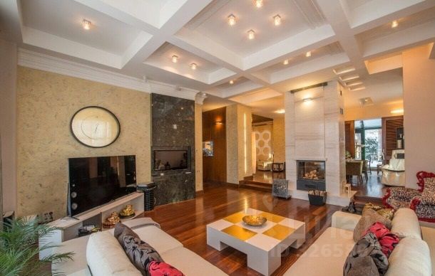 Величественный дом премиум-класса из отборного круглого бревна с открытой обустроенной террасой, большим красивым камином и высоким сводчатым потолком поражает своим масштабом и грандиозностью.