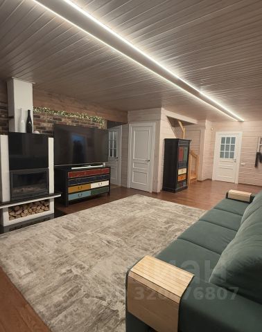 Величественный дом премиум-класса из отборного круглого бревна с открытой обустроенной террасой, большим красивым камином и высоким сводчатым потолком поражает своим масштабом и грандиозностью.