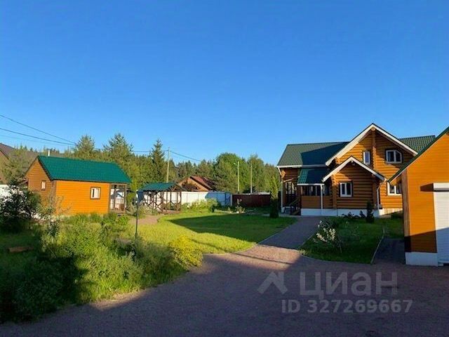 На участке газон и ухоженный сад, зона отдыха с мангалом, печью под казан и костровой чашей; огороженная детская игровая площадка, парковка для двух-трех автомобилей.